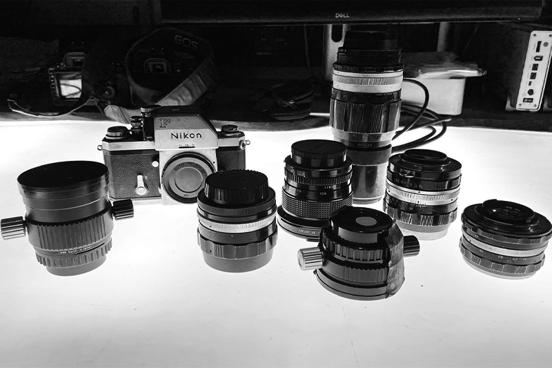 もはやヴィンテージ・グッズと言える井出情児の愛機たち。彼のアトリエで静かな時を経てきたカメラやレンズをおゆずりします。